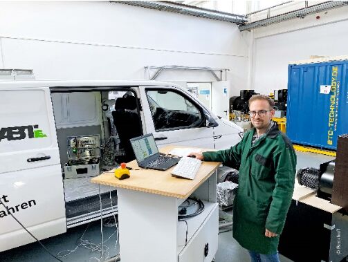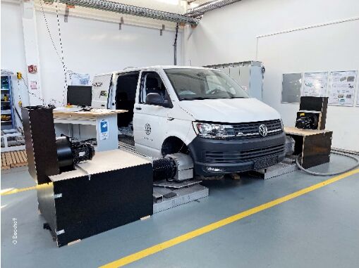 肯普滕應(yīng)用技術(shù)大學(xué)的試驗臺正在測試一輛由 ABT 公司完成電動轉(zhuǎn)型的大眾廂式車