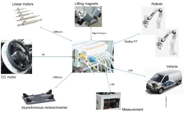肯普滕應(yīng)用技術(shù)大學(xué)(HS Kempten)研發(fā)的試驗臺主要用于車輛功能測試。該試驗臺是在肯普滕應(yīng)用技術(shù)大學(xué)專門研究汽車和自動化領(lǐng)域應(yīng)用及開發(fā)課題的控制工程和車輛系統(tǒng)實驗室中開發(fā)而成。實驗室在 2016 年成立初期,主要測試單個零部件的可靠性,后來其活動范圍逐漸擴大至復(fù)雜的完整系統(tǒng)試驗臺,甚至還包括教學(xué)活動。