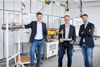 AGAM 系統(tǒng)前:Bonnenberg & Drescher 公司總經(jīng)理 Matthias Ritter 博士(左)和 Martin Brodeck 博士(右),以及倍福萊茵魯爾分公司負(fù)責(zé)人Ralf Stachelhaus(中間)