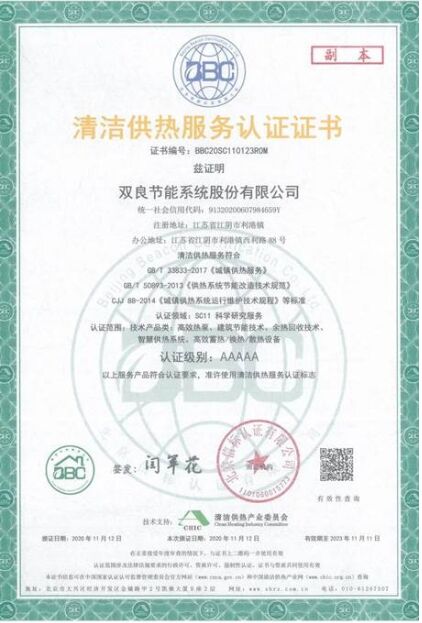 清潔供熱服務(wù)認(rèn)證是中國(guó)清潔供熱產(chǎn)業(yè)首個(gè)服務(wù)認(rèn)證,對(duì)于提升清潔供熱企業(yè)服務(wù)質(zhì)量、規(guī)范市場(chǎng)秩序、促進(jìn)中國(guó)清潔供熱產(chǎn)業(yè)持續(xù)健康發(fā)展具有重大意義。雙良獲得清潔供熱服務(wù)5A級(jí)認(rèn)證,體現(xiàn)了行業(yè)對(duì)雙良節(jié)能各項(xiàng)綜合優(yōu)勢(shì)的高度認(rèn)可和肯定。