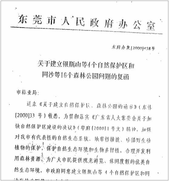 “這明顯是誹謗!标惱蠋熃榻B,東莞市人民政府于2000年12月21日批準(zhǔn)成立東莞市觀音山森林公園(東府辦復(fù)【2000】458 號文),總面積 26178 畝。