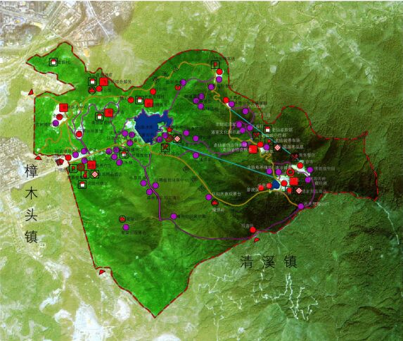 其次,看以上的合成比例圖,可以看出左下方和右前方標(biāo)紅長方形,2007年廣東省林業(yè)局批復(fù)的觀音山總體規(guī)劃圖有極少部分林地是越過了石新社區(qū)標(biāo)準(zhǔn)地名影像圖。但上面有講,觀音山的原始數(shù)據(jù)是來源于東莞市人民政府于2000年12月21日批準(zhǔn)成立東莞市觀音山森林公園(東府辦復(fù)【2000】458 號文)的文件中。也就是說觀音山自始至終都只是在原有的批復(fù)面積上去進(jìn)行申報總體規(guī)劃修編,合理合法合規(guī),沒有逾越半分。