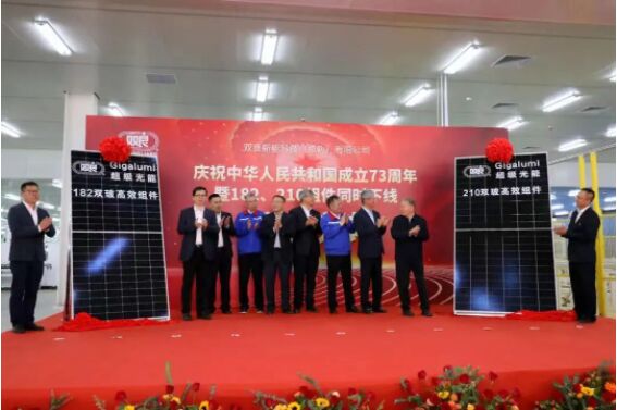 9月25日,雙良集團旗下雙良節(jié)能系統(tǒng)股份有限公司下屬子公司雙良新能科技(包頭)有限公司舉辦慶祝中華人民共和國成立73周年暨182、210組件同時下線活動。雙良集團董事局主席繆雙大、雙良節(jié)能董事長繆文彬、集團總裁馬培林、雙良光伏新能源產業(yè)園相關人員出席活動。這是雙良繼多晶硅還原爐、大尺寸單晶硅片后,又一量產下線的光伏產品。