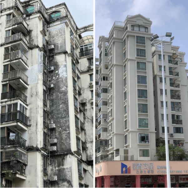 廣東省珠海市某30年高層住宅小區(qū)使用立邦輕質(zhì)真石漆進(jìn)行翻新改造