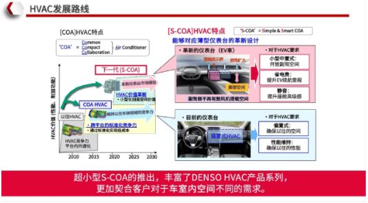 S-COA HVAC的“S”意味著Simple & Smart。本著“車輛左右方向尺寸減半、維持性能的同時,降低空調(diào)能耗,提高車室內(nèi)靜謐性”的開發(fā)目標,S-COA HVAC突出超小型(只有原體積的50%)、低能耗和低噪音特色,豐富了DENSO HVAC產(chǎn)品系列,更加契合客戶對于車室內(nèi)空間不同的需求。