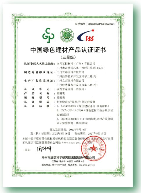立邦500多款產(chǎn)品已獲得綠色建材認(rèn)證