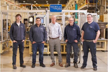 在位于安大略省倫敦的 Sodecia 全球技術和自動化中心(左起):Jessy Underhill、Danilo Abijaude Silva、倍福加拿大分公司的 Dean Herron、Ervin Pfaff 和 Chris Drees