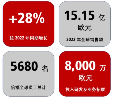 2022 年全球銷售額:15.15 億歐元(+28%)