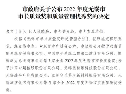 祝賀!無錫市市長質(zhì)量獎和質(zhì)量管理優(yōu)秀獎獲獎名單正式公布!
