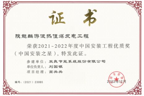 近日,中國安裝協(xié)會第七屆四次理事(擴大)會議暨第七屆四次常務(wù)理事會在南京召開。會議表彰了2021-2022年度中國安裝工程優(yōu)質(zhì)獎(中國安裝之星)獲獎單位及突出貢獻者。陜能麟游低熱值煤發(fā)電工程成功獲獎,該工程“煙塔合一”間接空冷系統(tǒng)由雙良節(jié)能EPC總承包建設(shè)。