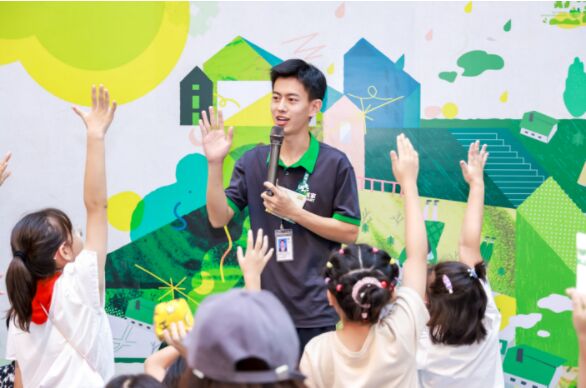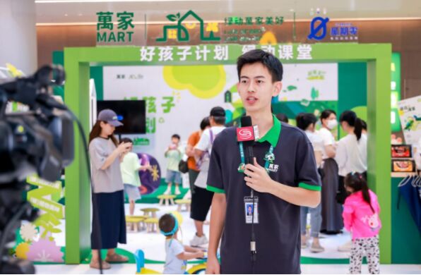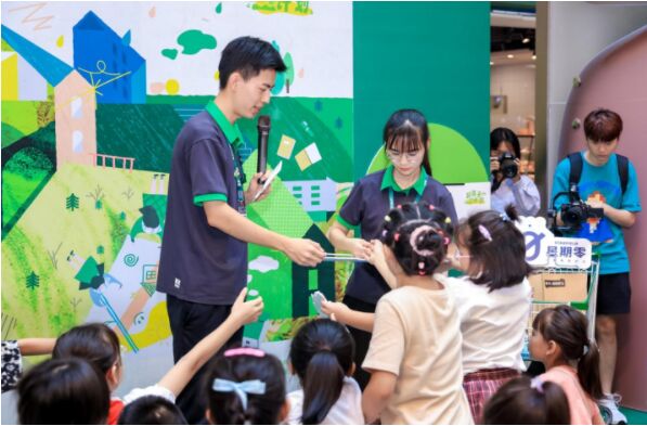 值得一提的是,本次活動(dòng)的主持人也是這家綠色門店所特有的萬(wàn)家減碳官之一,門店里的兩位“減碳官”角色,他們身上佩戴著徽章,與小朋友們和家人一起探索可持續(xù)生活,讓萬(wàn)家的可持續(xù)理念能與社區(qū)居民以更親切的形式互動(dòng),用更生動(dòng)的方式溝通。