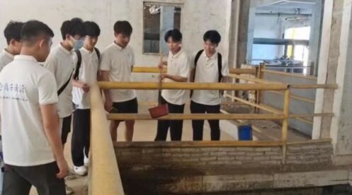 下午,小分隊深入鼎盛漂染織造廢水處理基地,實地調(diào)研處理基礎(chǔ)設(shè)施建設(shè)、處理情況等。期間,團隊成員還與技術(shù)人員進行交流,并學習厭氧處理工藝,體驗印染污水處理工序、檢測廢水排放情況,通過對污水處理廠、凈水處理廠的參觀,建立全面和系統(tǒng)的感性認識,熟悉處理廠工藝流程,總體布置及處理構(gòu)筑物的類型,構(gòu)造特點,運行和維護情況。深刻體會到工作人員的不易,更加堅定了投入基層實踐的決心。