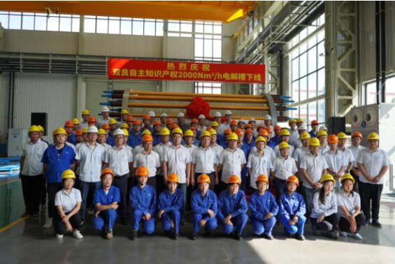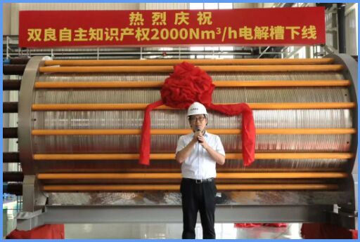 9月8日,在雙良綠電智能制氫裝備車間,自主知識產(chǎn)權(quán)2000Nm³/h電解槽成功下線,刷新了此前同產(chǎn)品的最大制氫量記錄,彰顯了雙良在大型電解槽系統(tǒng)設(shè)計與制造方面的實(shí)力,標(biāo)志著雙良?xì)淠墚a(chǎn)業(yè)向前再邁進(jìn)堅實(shí)一步。