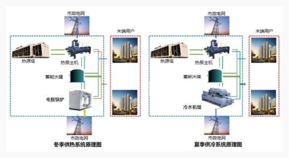 熱源塔熱泵系統(tǒng)是以空氣為熱源,主要由熱源塔、熱泵主機(jī)、再生裝置、智能控制系統(tǒng)、抗凍液以及其它附屬設(shè)備組合而成,通過(guò)熱源塔的熱交換和熱泵機(jī)組的作用,實(shí)現(xiàn)制冷、蓄冷、制熱、蓄熱等多工況運(yùn)行的節(jié)能低碳產(chǎn)品。