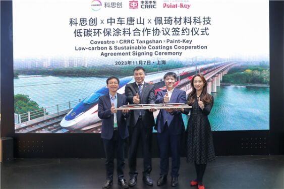 科思創(chuàng)與中車(chē)唐山機(jī)車(chē)車(chē)輛有限公司(簡(jiǎn)稱(chēng): 中車(chē)唐山公司)、蘇州佩琦材料科技有限公司(簡(jiǎn)稱(chēng): 佩琦涂料)在第六屆中國(guó)國(guó)際進(jìn)口博覽會(huì)期間簽署合作協(xié)議,共同推進(jìn)低VOC、低碳排放涂裝體系在軌道交通行業(yè)的研發(fā)與應(yīng)用,旨在為“中國(guó)速度”綠色升級(jí)保駕護(hù)航。