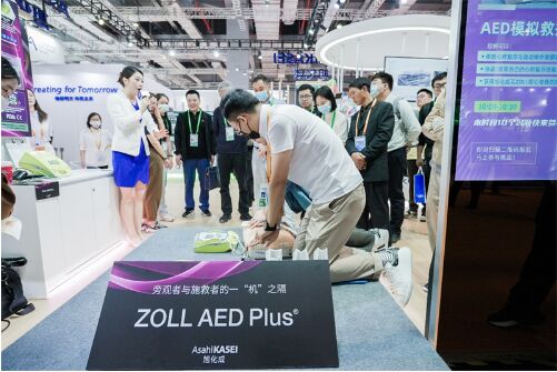 有趣的互動(dòng)式體驗(yàn)在旭化成的各個(gè)展示區(qū)均有涉及,如“健康中國(guó)”區(qū)域,microza®展臺(tái)設(shè)置有過(guò)濾裝置,可以讓觀眾更直觀的看到過(guò)濾前后的對(duì)比;ZOLL AED Plus ®體外除顫儀可以現(xiàn)場(chǎng)操作體驗(yàn),感受使用的便捷性和對(duì)施救成功率的提升;在“數(shù)字發(fā)展”區(qū)域,VELVET SOUND for Cars展臺(tái)放置了兩個(gè)耳機(jī),讓觀眾實(shí)際感受“身臨其境般”的聲音體驗(yàn);Akliteia® 展臺(tái)則設(shè)有掃描裝置,可以讓觀眾現(xiàn)場(chǎng)掃標(biāo)簽,了解體驗(yàn)旭化成的全新防偽解決方案;在“綠色社會(huì)”區(qū)域,觀眾可以觸摸感受Bemliese®的材料質(zhì)感。豐富多樣的展品體驗(yàn),為旭化成展臺(tái)帶來(lái)了絡(luò)繹不絕的觀眾。