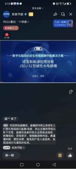 11月24日,雙良氫能源綠電智能制氫項目研發(fā)工程師張羽作為演講嘉賓,為大家分享《數字化驅動的全生命周期碳中和解決方案——適宜新能源應用場景JSDJ S1型堿性水電解槽》主題講座。