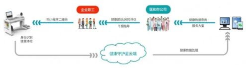 健康驛站-健康守護星的體驗流程為:員工自助掃描二維碼,根據手機端微信小程序和平板電腦的指引開始體檢;體檢結束后,云端對用戶的健康數據進行處理,從而對異常數據提出預警;醫(yī)和你通過接口調取用戶的健康數據進行分析評估和干預服務,根據給企業(yè)提供的服務方案提供服務。