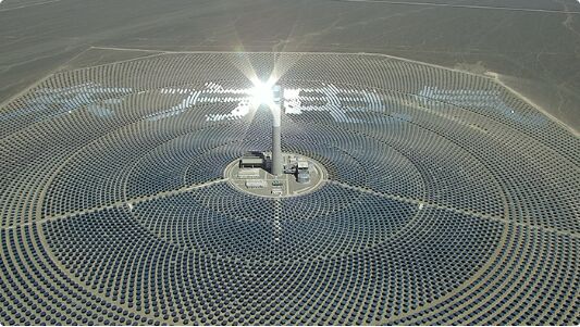 據(jù)了解,該項(xiàng)目位于青海省海南生態(tài)太陽能發(fā)電園區(qū)內(nèi),裝機(jī)規(guī)模1000兆瓦,包含光伏發(fā)電部分交流側(cè)容量900兆瓦和配套太陽能熱發(fā)電系統(tǒng)100兆瓦,其中100兆瓦光熱電站采用熔鹽塔式技術(shù)路線,鏡場總采光面積約50萬平方米,吸熱器熱功率260兆瓦,以二元熔鹽作為傳熱儲熱介質(zhì),等效儲熱時(shí)長達(dá)8小時(shí)。