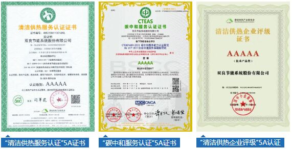 憑借多年在清潔供冷供熱領(lǐng)域的綜合實力,雙良節(jié)能榮獲“清潔供熱服務(wù)認證”5A證書、“碳中和服務(wù)認證”5A證書、首批中國清潔供熱產(chǎn)業(yè)“清潔供熱企業(yè)評級”5A級認證。