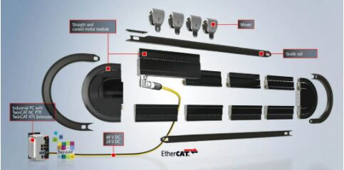 一套完整的模塊化 XTS 系統(tǒng)由電機模塊、導軌和動子,以及裝有 TwinCAT 自動化軟件的工業(yè) PC 構(gòu)成,可以根據(jù)具體的設備或系統(tǒng)布局進行調(diào)整。