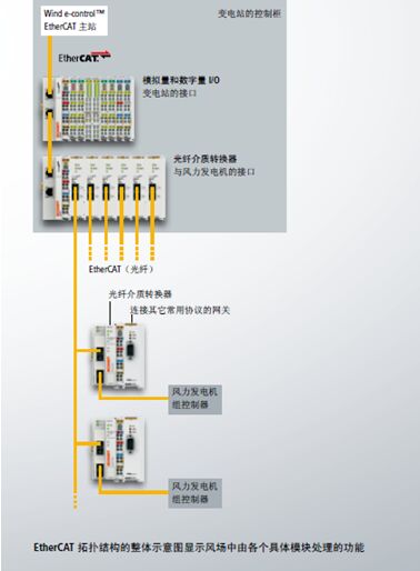 實時通訊使風電場應(yīng)用實現(xiàn)快速響應(yīng) EtherCAT光纖通訊網(wǎng)絡(luò),用于連接高效靈活的風力發(fā)電機組