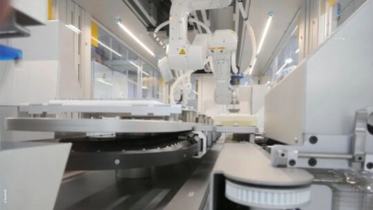 添加新的模塊后,這臺設備將來既能用散裝泡罩包裝組件,也能用帶紙板外包裝和已打印好的標簽的泡罩包裝組件。這需要在設備中添加一個切紙裝置、一個用于紙箱坯料的料庫模塊和一個新的打印機模塊。紙盒包裝將于 2023 年夏天推出;在此之前,包裝將繼續(xù)采用散裝泡罩。Elos 還增加了兩個視覺模塊,用于檢查待包裝的物品以及標簽的位置和內容。在此之前,設備底座上安裝了兩個機器人。擴展后,機器人可以在機器單元頂部的導軌上自由地來回移動,以騰出空間并執(zhí)行更多任務。