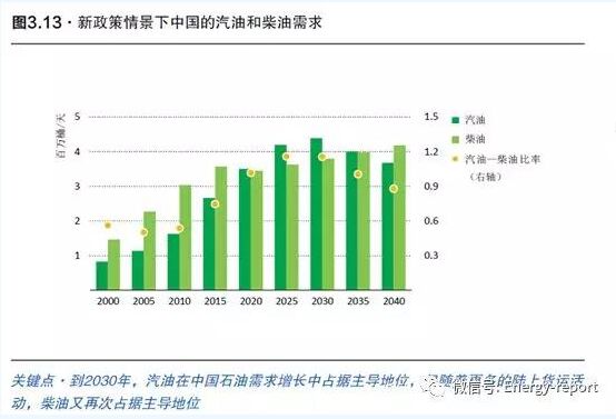 中國(guó)成為世界上最大的石油消費(fèi)國(guó),但不再是世界石油需求增長(zhǎng)的最主要來(lái)源。中國(guó)是石油市場(chǎng)的主力軍,2016年1150萬(wàn)桶的日均需求量和400萬(wàn)桶的日均產(chǎn)量之間的差距,使中國(guó)成為世界上最大的石油進(jìn)口國(guó)。到2030年,運(yùn)輸燃料需求的持續(xù)增長(zhǎng)意味著中國(guó)將取代美國(guó)成為世界上最大的石油消費(fèi)國(guó)。到那時(shí),中國(guó)的石油需求增長(zhǎng)將趨于平緩,預(yù)計(jì)到2025年以后,印度將成為全球石油消費(fèi)增長(zhǎng)的主要來(lái)源。到2040年,中國(guó)的乘用車保有量的增長(zhǎng)將減緩,四分之一的汽車將是電動(dòng)車,嚴(yán)格的燃油經(jīng)濟(jì)性指標(biāo)將限制其他車輛對(duì)油品的消費(fèi)。預(yù)計(jì)中國(guó)的乘用車油耗將在2030年后下滑。 逐步轉(zhuǎn)換到清潔發(fā)電