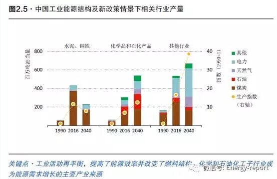 中國(guó)日益增長(zhǎng)的能源需求正越來(lái)越多地依賴可再生能源、天然氣和電力;而煤炭需求有所回落。電力和可再生能源需求的增長(zhǎng)與中國(guó)能源結(jié)構(gòu)的多樣化和清潔化密切相關(guān)。到2040年,煤炭在總發(fā)電量中所占份額將從2016年的三分之二降到40%以下。電力和天然氣需求的增長(zhǎng)與工業(yè)和民用部門是密切相關(guān)的,因?yàn)檫@些能源滿足了輕工業(yè)部門的能源需求又契合了人們對(duì)空氣質(zhì)量日益增長(zhǎng)的要求。中國(guó)還將生物質(zhì)能應(yīng)用到工業(yè)中,將太陽(yáng)能用于供暖以及運(yùn)用生物燃料運(yùn)輸,從而增加終端消費(fèi)行業(yè)對(duì)可再生能源的直接利用。到2040年,電力將在中國(guó)的終端能源消費(fèi)中占據(jù)主導(dǎo)地位,到21世紀(jì)20年代后期超過(guò)煤炭,此后不久將會(huì)超過(guò)石油。到2040年,天然氣需求量將上升到6000億立方米以上,使中國(guó)成為僅次于美國(guó)的全球第二大天然氣市場(chǎng),也是全球天然氣需求增長(zhǎng)的最主要來(lái)源:在此期間,天然氣在中國(guó)主要能源結(jié)構(gòu)中的份額將從不到6%上升至12%以上。與此同時(shí),隨著燃煤發(fā)電的發(fā)電量達(dá)到峰值,以及重工業(yè)用煤和居民供熱用煤出現(xiàn)結(jié)構(gòu)性下滑,中國(guó)的煤炭需求最終將遠(yuǎn)低于2016年的水平。煤炭在中國(guó)一次能源結(jié)構(gòu)中的份額將縮減20個(gè)百分點(diǎn),到2040年約為45%。