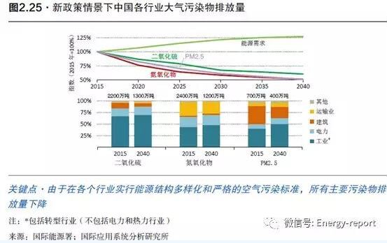 強(qiáng)大的執(zhí)行力和有力的政策支持了可再生能源成本的持續(xù)降低,而太陽(yáng)能光伏將成為中國(guó)最經(jīng)濟(jì)的發(fā)電方式。以水力、風(fēng)能和太陽(yáng)能光伏引領(lǐng)的低碳裝機(jī)容量迅速增長(zhǎng),到2040年將占總裝機(jī)容量的60%。到2020年前后,中國(guó)普遍的太陽(yáng)能光伏項(xiàng)目成本將比新建和已有的燃?xì)怆姀S成本更具經(jīng)濟(jì)性,到2030年,比新建燃煤機(jī)組和陸上風(fēng)電成本更具經(jīng)濟(jì)性。到2040年,新的太陽(yáng)能光伏發(fā)電成本也將低于已有燃煤發(fā)電廠的預(yù)計(jì)運(yùn)營(yíng)成本。這種傳統(tǒng)優(yōu)勢(shì)的顛覆有重要意義,但也需要重大的電力市場(chǎng)改革和強(qiáng)力的電網(wǎng)建設(shè)措施,提高風(fēng)能與太陽(yáng)能互補(bǔ)發(fā)電的市場(chǎng)份額。目前由于中國(guó)現(xiàn)有的電力系統(tǒng)的接納能力不足,棄風(fēng)、棄光率達(dá)到約15%。在我們的預(yù)測(cè)中,對(duì)新輸電線路的一項(xiàng)重大投資緩解了這些制約因素,使得中國(guó)內(nèi)陸的可再生能源能夠?yàn)楦拷0毒的需求中心帶來(lái)價(jià)格更低廉的電力。除可再生能源外,燃?xì)獍l(fā)電量也翻了三倍,但其發(fā)電份額仍低于10%。核能的地位預(yù)計(jì)也會(huì)繼續(xù)增長(zhǎng):到2030年,中國(guó)將超過(guò)歐盟和美國(guó),成為全球核能發(fā)電的領(lǐng)導(dǎo)者。 中國(guó)能源領(lǐng)域的環(huán)保措施的步伐將更加穩(wěn)健