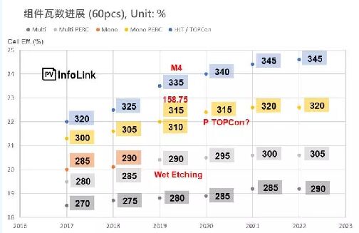 硅片大小與厚度的轉(zhuǎn)變 由于電池提效越發(fā)困難,2018年單、多晶硅片陸續(xù)出現(xiàn)各種大小的嘗試,為了更高的組件瓦數(shù)輸出,硅片、組件的面積變大趨勢(shì)已更加明確,預(yù)期明年超過(guò)157mm尺寸的硅片產(chǎn)品能占到全年2成的需求量。 單晶方面,N型組件、臺(tái)灣組件等以小眾、高效等市場(chǎng)為目標(biāo)的廠(chǎng)商,需要再拉高組件瓦數(shù)與性?xún)r(jià)比,故幾乎逐漸調(diào)整硅片至M4尺寸。國(guó)內(nèi)企業(yè)則是以晶科為首開(kāi)始主推158.75mm的尺寸,若陸續(xù)有其他垂直整合大廠(chǎng)跟進(jìn),市場(chǎng)可能分化為垂直整合廠(chǎng)158.75mm與非垂直整合廠(chǎng)維持M2兩種尺寸。多晶硅片面積目前看來(lái)較沒(méi)有統(tǒng)一化的跡象,多由一體廠(chǎng)自行推動(dòng)。 在厚度的部分,為了降本,有越來(lái)越多產(chǎn)線(xiàn)調(diào)適到能夠采用160um厚度的單晶硅片,而多晶在薄化的過(guò)程中仍舊屈居劣勢(shì)。 電池片、組件技術(shù)更上一層樓 就像2018年P(guān)ERC取代常規(guī)單晶一樣,SE在2019年也將成為產(chǎn)線(xiàn)的標(biāo)準(zhǔn)配備,接下需視TOPCon在P型單晶電池片上是否能在有突破,但無(wú)論如何P型單晶電池片的提效空間已越來(lái)越小,后續(xù)組件效率的提升將由組件技術(shù)來(lái)接棒達(dá)成。 今年看來(lái),半片組件為所有組件技術(shù)中設(shè)備、良率、實(shí)際產(chǎn)量都相對(duì)成熟的技術(shù)路線(xiàn),尤其今年下半市場(chǎng)接受度明顯提升,預(yù)期明年會(huì)有更多廠(chǎng)家更大幅度的將產(chǎn)線(xiàn)升級(jí)為半片。 多主柵及疊瓦技術(shù)肯定也是未來(lái)的主流技術(shù)趨勢(shì),但由于技術(shù)、設(shè)備成熟度等都還有待時(shí)間醞釀,故PVInfoLink預(yù)期爆發(fā)的時(shí)間點(diǎn)會(huì)是在2020年之后。 在雙面組件部分,雖PERC電池片做成雙面發(fā)電幾乎沒(méi)有額外的成本提升,但雙面組件目前市場(chǎng)拓展速度仍稍顯緩慢,明年雙面發(fā)電組件的出貨預(yù)期以中國(guó)內(nèi)需為主,海外則隨終端逐漸認(rèn)知到雙面發(fā)電組件的增益而緩步增長(zhǎng)。