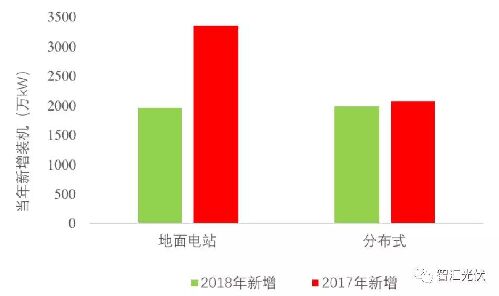 從上圖可以看出, 1)相對于2017年,2018年的裝機規(guī)模減少,主要是地面電站項目;地面電站相對于2017年大約降低了12.5GW以上,下降比例高達38%; 2)2018年新增的分布式裝機規(guī)模與2017年相當,甚至還略高于2017年; 3)2018年新增裝機中,分布式占比近50%; 4)如果按531之前分布式有補貼,531之后僅光伏扶貧分布式項目有補貼,則2018年將有約5GW分布式項目是無補貼指標的。 這部分項目,是否能進入明年的補貼目錄?這還是個懸念。