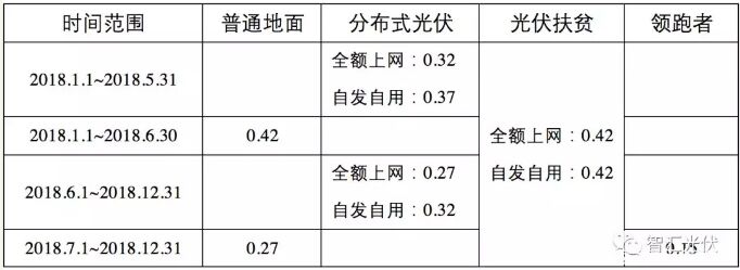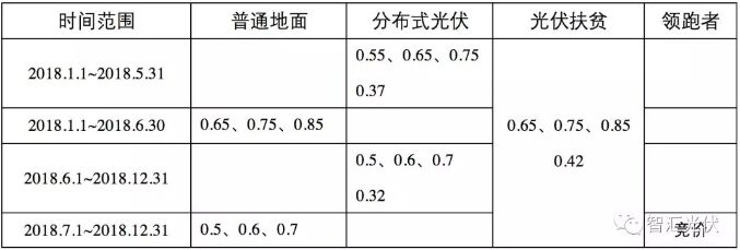 表2:2018年各類項(xiàng)目在不同時(shí)間執(zhí)行的度電補(bǔ)貼(元/kWh)