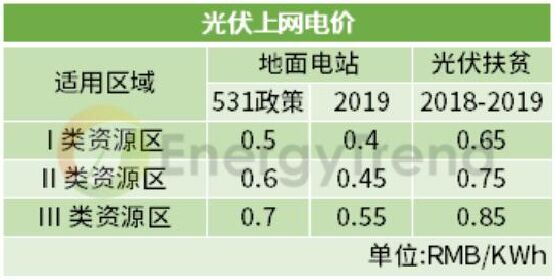 五一勞動節(jié)前,發(fā)改委價格司發(fā)布了2019年度的光伏電價政策,根據(jù)《國家發(fā)展改革委關于完善光伏發(fā)電上網(wǎng)電價機制有關問題的通知》(下稱《通知》),2019年度的光伏上網(wǎng)電價將繼續(xù)調(diào)降,其中地面電站三類資源區(qū)均下調(diào)至少0.1元,僅光伏扶貧電站上網(wǎng)電價仍維持每千瓦時0.65元、0.75元、0.85元執(zhí)行,本次光伏政策將于2019年7月1日起正式實施。