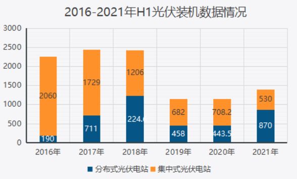 供應(yīng)鏈價(jià)格對(duì)國(guó)內(nèi)光伏電站終端需求的抑制作用在上半年裝機(jī)數(shù)據(jù)中體現(xiàn)明顯,在上游價(jià)格持續(xù)上漲的高壓下,光伏電站下游裝機(jī)需求并不樂觀,尤其是集中式地面電站裝機(jī)慘淡,創(chuàng)下近六年來的裝機(jī)最低規(guī)模。同時(shí),這也是近六年的半年度裝機(jī)中,分布式光伏首次大規(guī)模超過地面電站。