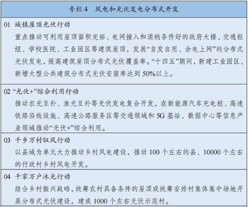 在“十四五”規(guī)劃中,重點提及了“光伏+”和“千鄉(xiāng)萬戶沐光行動”,如下圖所示。而這兩個發(fā)展方向,均與農(nóng)民利益相關(guān)。