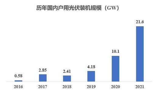 2019年以來,戶用光伏被給予單獨的補貼,得到快速的發(fā)展。從2018年開始,裝機規(guī)模幾乎每年翻一番,詳見下圖。