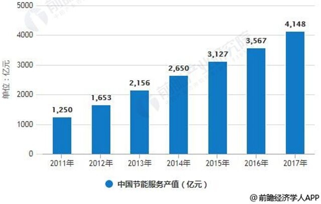 節(jié)能服務(wù)行業(yè)基本概況分析。節(jié)能服務(wù)行業(yè)以各種專業(yè)性的節(jié)能服務(wù)公司為主體,以能源消費(fèi)者為客戶,幫助客戶解決節(jié)能運(yùn)營改造的技術(shù)和執(zhí)行問題,是現(xiàn)代服務(wù)業(yè)的重要組成部分。 節(jié)能服務(wù)項(xiàng)目主要分布在建筑、工業(yè)和交通運(yùn)輸領(lǐng)域,接受節(jié)能服務(wù)的目的在于減少能源消耗、提高能源使用效率、降低污染排放等。 中國節(jié)能服務(wù)產(chǎn)業(yè)產(chǎn)值分析預(yù)測 據(jù)前瞻產(chǎn)業(yè)研究院發(fā)布的《節(jié)能服務(wù)行業(yè)市場前瞻與投資戰(zhàn)略規(guī)劃分析報(bào)告》統(tǒng)計(jì)數(shù)據(jù)顯示,2017年中國節(jié)能服務(wù)產(chǎn)業(yè)產(chǎn)值達(dá)4148億元,全國從事節(jié)能服務(wù)的企業(yè)6137家,行業(yè)從業(yè)人數(shù)68.5萬人,合同能源管理投資形成年節(jié)能能力超過3800萬噸標(biāo)準(zhǔn)煤,年減排二氧化碳突破1億噸,節(jié)能服務(wù)產(chǎn)業(yè)繼續(xù)保持了良好發(fā)展勢頭。預(yù)計(jì)2018年我國節(jié)能服務(wù)業(yè)總產(chǎn)值將達(dá)到4688億元,未來五年(2018-2022)年均復(fù)合增長率約為13.35%,預(yù)測到了2022年我國節(jié)能服務(wù)業(yè)總產(chǎn)值將達(dá)到7740億元。