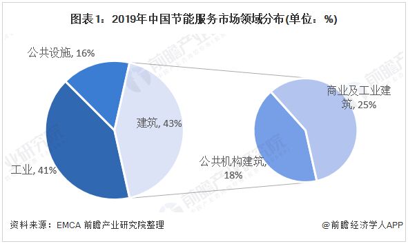 1、中國節(jié)能服務(wù)分布在工業(yè)和建筑領(lǐng)域 根據(jù)中國節(jié)能協(xié)會節(jié)能服務(wù)產(chǎn)業(yè)委員會(EMCA)2019年對合同能源管理項(xiàng)目進(jìn)行調(diào)查分析的結(jié)果顯示,按照節(jié)能三大領(lǐng)域分類,工業(yè)領(lǐng)域項(xiàng)目有項(xiàng)目總數(shù)的41%;建筑領(lǐng)域項(xiàng)目有占項(xiàng)目總數(shù)的43%,其中公共機(jī)構(gòu)建筑18%,商業(yè)及工業(yè)建筑25%;公共設(shè)施項(xiàng)目項(xiàng)目總數(shù)的16%。