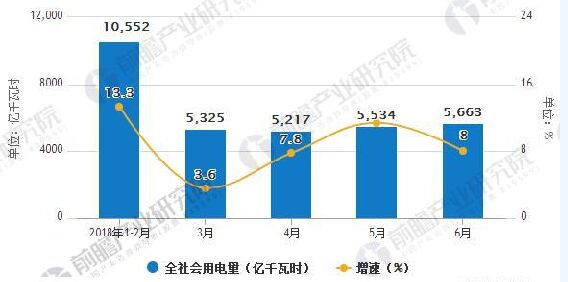2018年1-6月全國全社會用電量統(tǒng)計及增長情況