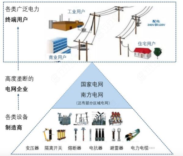 電網(wǎng)的上游包括建設(shè)環(huán)節(jié)的設(shè)備企業(yè)和運(yùn)營(yíng)環(huán)節(jié)的發(fā)電企業(yè)。其中電力設(shè)備企業(yè)不僅有硬件設(shè)備,也包括軟件,系統(tǒng)集成等。