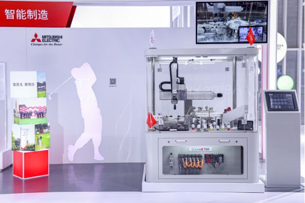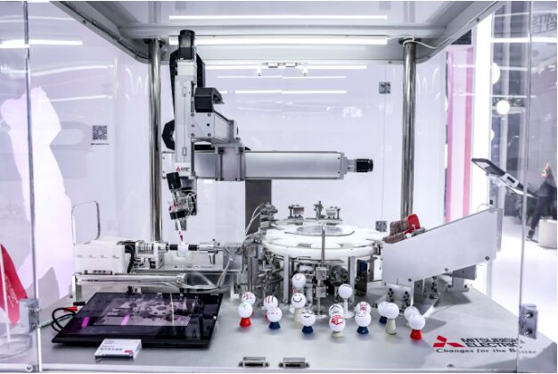 此次參展,三菱電機帶來了多項科技感和趣味性十足的打卡互動體驗,吸引了大批觀眾駐足,最吸睛的莫過于高爾夫球繪圖包裝展機。通過五軸聯(lián)動運行、二維平面轉(zhuǎn)換三維球面軌跡算法、數(shù)字孿生等核心技術(shù),機械控制臂可在半徑為21.3mm的高爾夫球面進行精細繪畫,不到2分鐘即可完成高爾夫球上的繪畫與制盒包裝,引發(fā)現(xiàn)場陣陣驚嘆。三菱電機通過生動形象的方式,將自己的高精密智能制造能力完美展現(xiàn)。