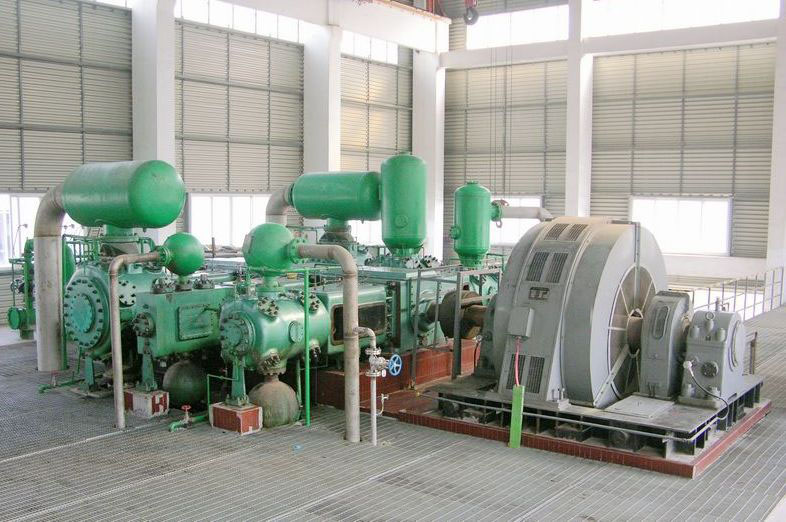 DW-66/4型空氣壓縮機(jī) 工廠代號:854 壓縮介質(zhì):空氣 列數(shù):6,容積流量:66m3/s,吸氣壓力:0.095MPa, 排氣壓力:0.5MPa 機(jī)組總重量:31297Kg, 電機(jī)功率:315Kw