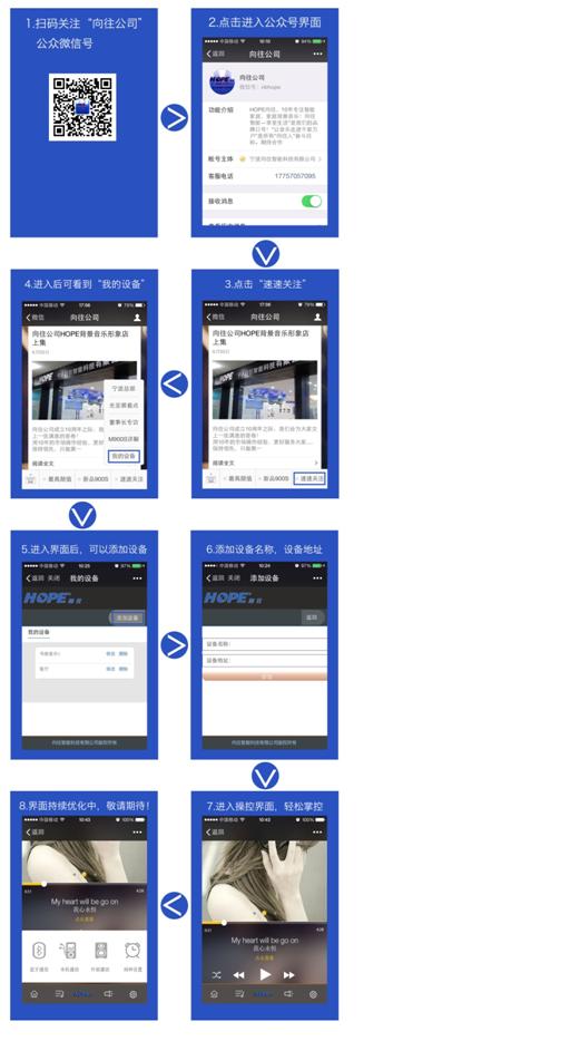 五、最強大的控制軟件是借助現(xiàn)有的公眾APP(微信控制) 向往公司M900S之前談到硬件部分,包括RK3288主頻芯片,1.6G四核安卓系統(tǒng),以及強大的全類型芯片,支持DDR3,DDR3L等。 如今,向往公司持續(xù)努力,加緊公司產(chǎn)品軟件部分的工作。如今大家看到的485協(xié)議控制軟件,全屏控制軟件以及如今重磅推出的微信控制軟件等,讓更多的經(jīng)銷商對向往充滿了更大的激情。