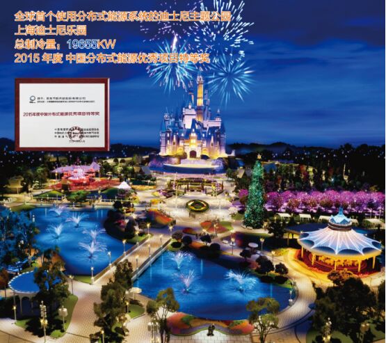 上海迪斯尼樂園——中國內(nèi)地首座迪斯尼主題樂園,是目前全球唯一使用分布式能源系統(tǒng)的迪斯尼樂園,榮獲2015年度中國分布式能源優(yōu)秀項(xiàng)目特等獎(jiǎng),該樂園采用雙良冷熱電聯(lián)供系統(tǒng),總制冷量達(dá)19604KW,一次能源綜合利用效率(HHV)達(dá)到85.9%以上,每年可節(jié)約電費(fèi)1000萬元,減排二氧化碳近萬噸,減排二氧化硫212噸。