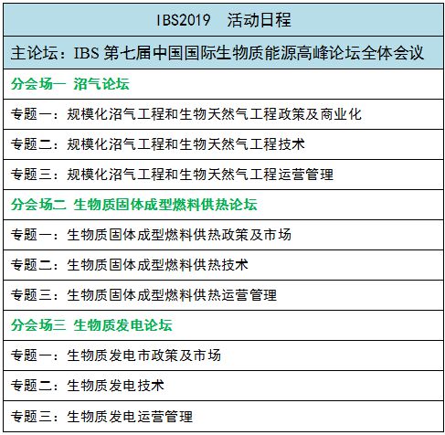 【IBS2019會(huì)議倒計(jì)時(shí)10天】 IBS2019第七屆中國(guó)國(guó)際生物質(zhì)能源高峰論壇將于2019年4月11日在上海召開! 【大會(huì)議程】 作為行業(yè)內(nèi)極具影響力的生物質(zhì)高峰論壇,每年的IBS都會(huì)有來自行業(yè)內(nèi)知名的眾多廠商參展并展示最新的生物質(zhì)科技。那么問題來了,今年的IBS2019論壇又有哪些新變化呢?又將為我們帶來哪些驚喜?接下來,就跟著小編一起來見證IBS 2019論壇的獨(dú)特魅力! 與去年大會(huì)相比,IBS2019會(huì)完善生物質(zhì)能產(chǎn)業(yè)鏈布局,全力拓展整個(gè)生物質(zhì)能源市場(chǎng)現(xiàn)場(chǎng),將涵蓋生物質(zhì)沼氣、發(fā)電、固體燃料三大領(lǐng)域,涵蓋鍋爐、燃燒設(shè)備,成型燃料及設(shè)備,生物質(zhì)氣化、生物質(zhì)供熱、生物質(zhì)發(fā)電、熱電聯(lián)產(chǎn)等配套設(shè)備,沼氣、生物燃?xì),垃圾處理,生物液體燃料,秸稈利用設(shè)備等。