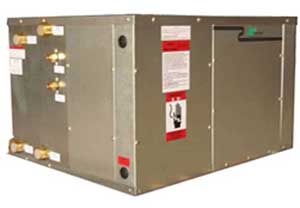 水-水式水環(huán)/水源/地源熱泵機組是以地能(地下水)或循環(huán)流動的水或鹽水為主要能源,輔以電能,通過先進的設(shè)備將地下取之不竭但不易利用的低品位再生能源加以開發(fā)利用,使其變?yōu)楦咂肺荒茉,同時向室內(nèi)未端供應冷(熱)水,來達到制冷(熱)目的。